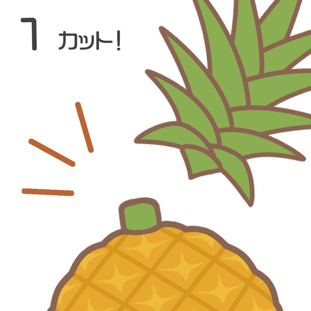1パイナップルの頭とお尻を切り落とします